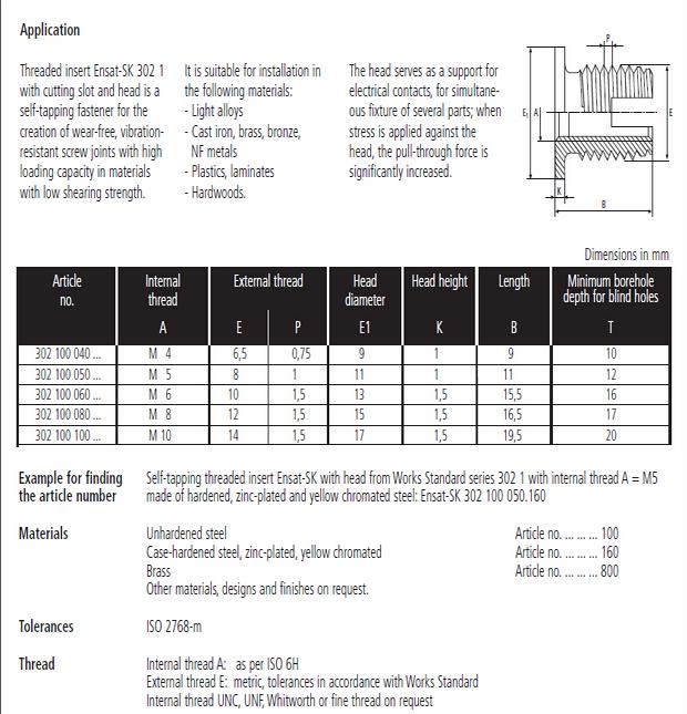302-1型自攻龙岩丝套是一种新型的紧固件,使用后能够加强螺纹强度。产品有内外牙,将其嵌入塑料,铝合金,铸铁,铜等较软材料内,形成的内螺纹孔就可以具有较高的强度。